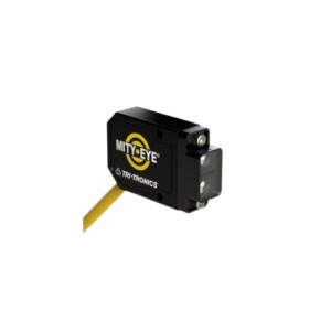 El proceso comienza con un sensor fotoeléctrico retro reflectivo MDHRCR5 de TRI-TRONICS, encargado de detectar la presencia de cada producto que entra en la zona de inspección. Este sensor garantiza una detección rápida y confiable incluso en ambientes industriales exigentes.