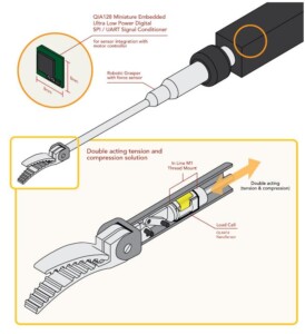 La construcción de sensores más compactos es un aspecto importante para el desarrollo de tecnologías aplicadas a la robótica, principalmente en el campo de la medicina. Por ese motivo, Futek ha desarrollado la celda de carga más pequeña de su tipo con un tamaño de solo 4×5 milímetros y 0.5 gramos pero capaz de soportar hasta 30 libras de fuerza. Capaz de detectar fuerzas de tensión como de compresión puede ser instalada por medio de sus dos barrenos opuestos de montaje de 0.028 pulgadas de diámetro y rosca M1.
