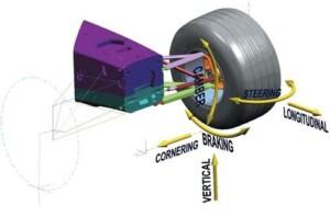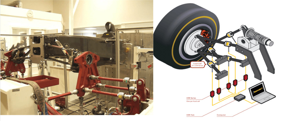 Para lograr esto, las celdas de carga se colocan en línea con cada brazo de suspensión, lo que brinda información detallada de la carga que pasa por cada brazo, mediciones precisas de la carga de la dirección y agarre indirecto de los neumáticos delanteros que permite ajustar el sistema de suspensión para optimizar el rendimiento y el manejo.