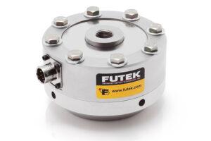 La celda de carga tipo panqueque con clasificación de fatiga LCF456 de FUTEK se fija al punto distal del brazo del robot para cuantificar la fuerza que se aplica en el proceso con alta precisión y repetibilidad.