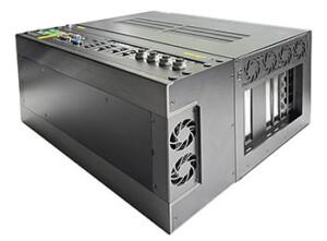 Esto es bastante elaborado, ingenioso y excelentemente ejecutado. Sería excesivo si una GP-3000 se usará sólo como una PC industrial sin ninguna de las unidades de expansión y tarjetas gráficas de funcionamiento en caliente, y especialmente si una GP-3000 estuviera equipada con una de las CPUs menos disponibles con TDP como tan bajo como 35 vatios. Pero demasiado enfriamiento es mejor que no suficiente, por lo que el GP-3000 fue diseñado para mantenerse fresco sin importar qué, incluso con el atronador TDP Xeon de 8 núcleos / 16 hilos E-2278GE de 80 vatios instalado en nuestra unidad de revisión. Eso es muy impresionante.