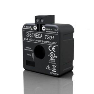 - Los transductores de corriente T201 de Seneca se encargan de medir continuamente el consumo eléctrico, la temperatura, la tensión y otros parámetros operativos.