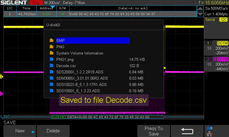 The four-channel SDS1X-E series firmware 6.1.26 adds the ability to save serial decode data as a CSV formatted file.