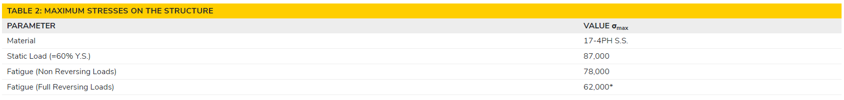 En nuestro ejemplo vemos que las cargas extrañas son aceptables si son estáticas o no reversibles. Si estas cargas se invierten completamente, la estructura podría ceder, por lo que se debe seleccionar una unidad de mayor capacidad. Cabe señalar que la condición de tensión máxima de inversión total se determina de modo que la estructura dure al menos de 10 a 20 millones de ciclos. Si la celda de carga necesita durar más de 100 millones de ciclos, la tensión de fatiga máxima para una carga inversa debe ser inferior a σmax × 0,75 (46.500 psi en nuestro caso). En este caso, si queremos que la celda de carga dure una vida infinita en condiciones de fatiga completamente reversibles, necesitaremos buscar una mayor capacidad de carga.