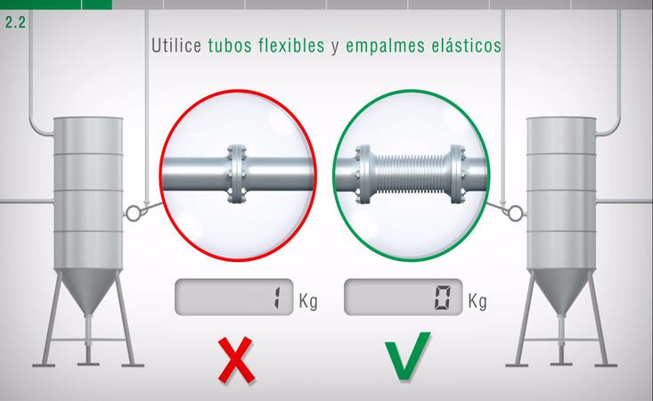 Cuanto menos fricciones estén presentes en la estructura pesada, mayor será la precisión del sistema de pesaje en presencia de tuberías. Antes de sujetar un tubo a la estructura de pesaje, compruebe que el mismo esté cerca y alineado al orificio o tubo al que se va a sujetar.