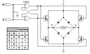Para controlar el motor es necesario utilizar un puente H y enviarle una secuencia lógica. Estos dos circuitos se encuentran por lo general en el driver del controlador, al que solo se le introduce el pulso de paso y dirección.