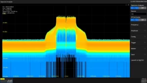 Una de las funcionalidades más destacadas es el Análisis Espectral en Tiempo Real (RTSA), con un ancho de banda de análisis de hasta 1 GHz. Esta característica, junto con la conversión digital descendente (DDC), permite la captura eficaz de señales transitorias en tecnologías como 5G NR, 4G LTE y Wi-Fi. El SDS7000A incluye modos de visualización avanzados como gráficos de densidad, monitoreo espectral y representaciones en 3D.