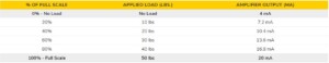 Como la mayoría de las celdas o transductores de fuerza son conectados con un amplificador o display en específico. Dicha instrumentación también es considerada para realizar la calibración de tal forma que la calibración de la celda se realiza en conjunto con los equipos con los que esta va a ser usada. Por ejemplo, una celda de 50 lbs que ha sido configurada con un amplificador de señal IAA200 con salida analógica y un cable de 10 ft de longitud ante una calibración las mediciones que se toman son la entregadas por el sistema en conjunto lo que se ve de la siguiente forma: