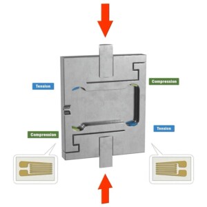 Calibración de dos puntos: Este tipo de calibración es mas preciso. El error del sensor es ajustado a dos distintos valores de salida resultando en una línea recta razonablemente precisa conforme a la escala de las fuerzas a medir. Los dos puntos empleados en la calibración son del 0 hasta el valor máximo de la celda o la fuerza máxima que se desea medir.