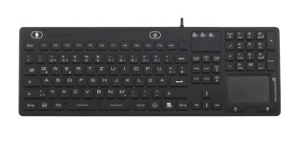 El teclado de silicón industrial cuenta con carcasa de policarbonato ABS, layout en inglés con 116 teclas, teclado numérico y 24 teclas de funciones, trackball integrado, interfaz USB y cuenta con protección NEMA 4X.